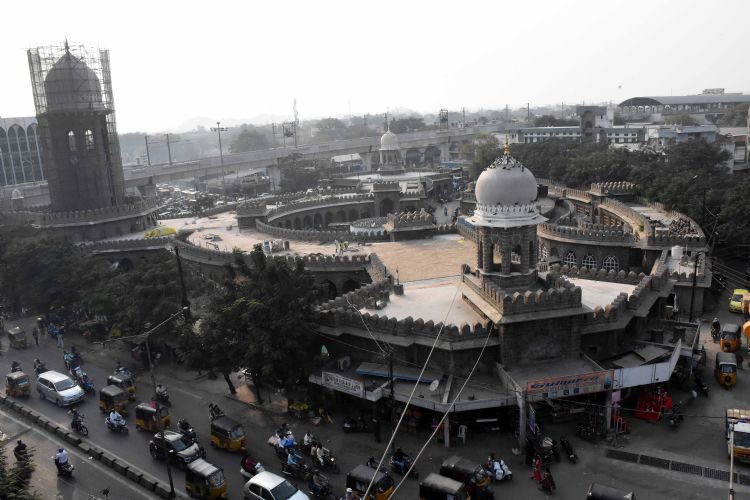 GHMC workers carrying out restoration works at Mouzam Jahi market - INN Photos