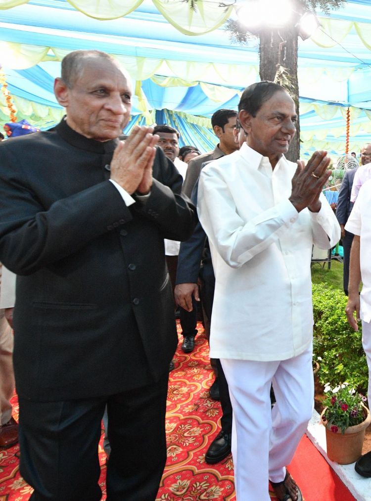 Governor of Andhra Pradesh and Telangana E.S.L. Narasimhan organized a Dinner at Raj Bhavan and many leaders including CM KCR and Janasena Chief Pawan Kalyan attended the event.