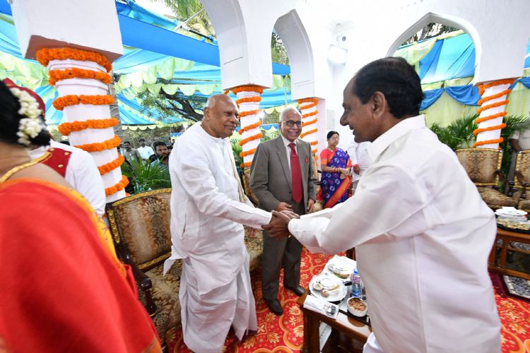 Governor of Andhra Pradesh and Telangana E.S.L. Narasimhan organized a Dinner at Raj Bhavan and many leaders including CM KCR and Janasena Chief Pawan Kalyan attended the event.