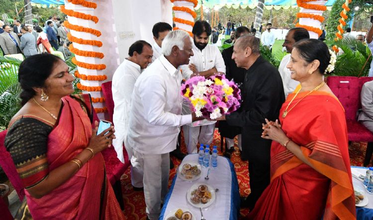 Governor of Andhra Pradesh and Telangana E.S.L. Narasimhan organized a Dinner at Raj Bhavan and many leaders including CM KCR and Janasena Chief Pawan Kalyan attended the event.