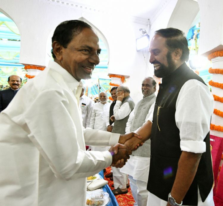 Governor of Andhra Pradesh and Telangana E.S.L. Narasimhan organized a Dinner at Raj Bhavan and many leaders including CM KCR and Janasena Chief Pawan Kalyan attended the event.