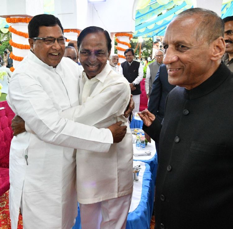 Governor of Andhra Pradesh and Telangana E.S.L. Narasimhan organized a Dinner at Raj Bhavan and many leaders including CM KCR and Janasena Chief Pawan Kalyan attended the event.