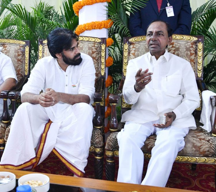 Governor of Andhra Pradesh and Telangana E.S.L. Narasimhan organized a Dinner at Raj Bhavan and many leaders including CM KCR and Janasena Chief Pawan Kalyan attended the event.