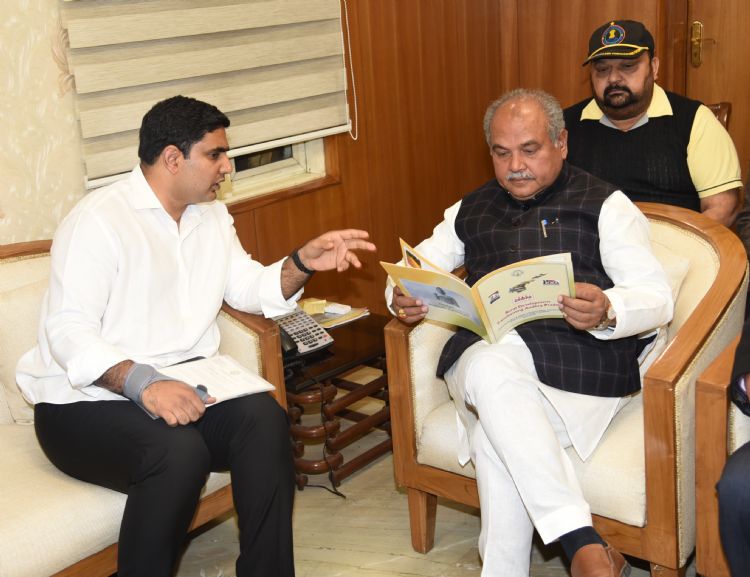 Andhra Pradesh Minister for Panchayati Raj, Rural Development and Information Technology Nara Lokesh along with several MPs met Central Panchayati Raj and Rural Development Minister Narendra Singh Tomar and Central Minister for State for Water Resources Arjun Ram Meghwal on Wednesday.