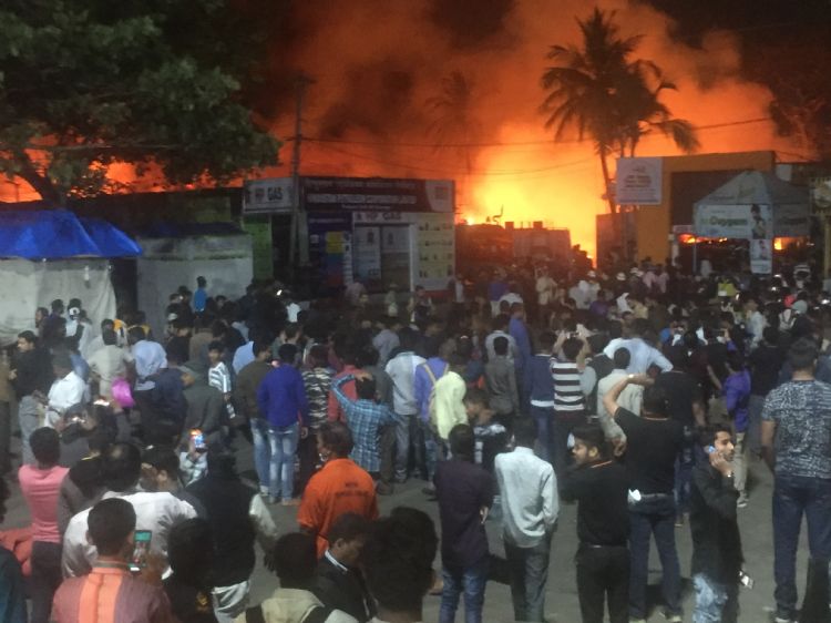 Huge fire broke out and almost 75 percent of the Hyderabad Exhibition Numaish stalls were burned into ashes Wednesday evening. Fire broke out at around 8.25 pm and it seems that the cause of the fire was burst of a cylinder at a cotton candy stall. Disaster unit and dozens firefighters, police and exhibition officials were helping out the public to go out of the exhibition area.