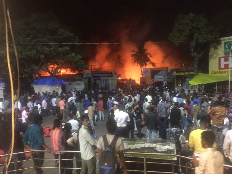 Huge fire broke out and almost 75 percent of the Hyderabad Exhibition Numaish stalls were burned into ashes Wednesday evening. Fire broke out at around 8.25 pm and it seems that the cause of the fire was burst of a cylinder at a cotton candy stall. Disaster unit and dozens firefighters, police and exhibition officials were helping out the public to go out of the exhibition area.