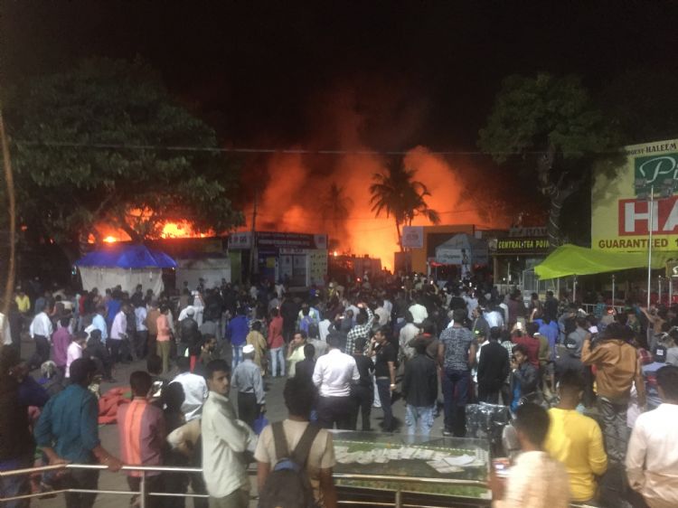 Huge fire broke out and almost 75 percent of the Hyderabad Exhibition Numaish stalls were burned into ashes Wednesday evening. Fire broke out at around 8.25 pm and it seems that the cause of the fire was burst of a cylinder at a cotton candy stall. Disaster unit and dozens firefighters, police and exhibition officials were helping out the public to go out of the exhibition area.