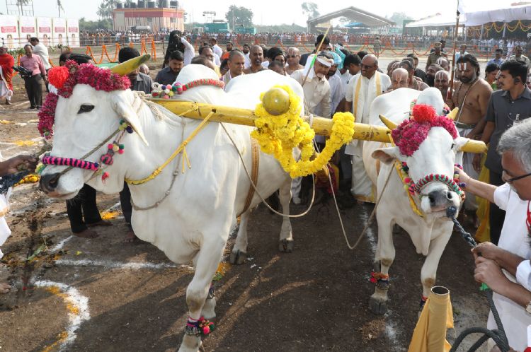 The construction of Sri Venkateswara Divyakshetram at Venkatapalem in Tullur mandal of Guntur district commenced on a religious note with Bhookarshanam and Beejaavapanam events on Thursday. CM Chandrababu Naidu took the plough and dug the area amidst chanting of Veda mantras.