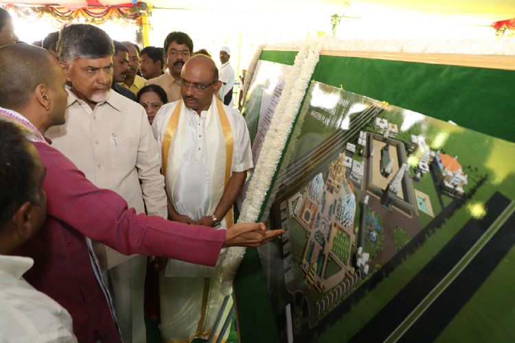 The construction of Sri Venkateswara Divyakshetram at Venkatapalem in Tullur mandal of Guntur district commenced on a religious note with Bhookarshanam and Beejaavapanam events on Thursday. CM Chandrababu Naidu took the plough and dug the area amidst chanting of Veda mantras.