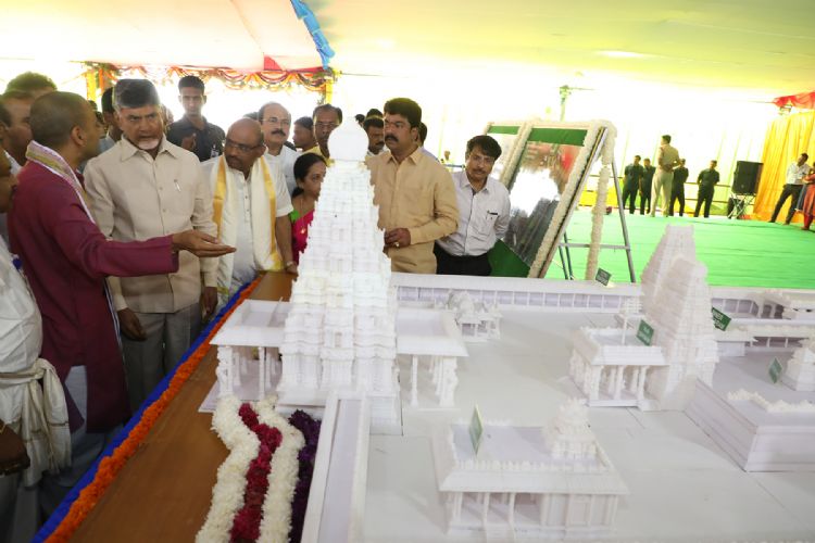 The construction of Sri Venkateswara Divyakshetram at Venkatapalem in Tullur mandal of Guntur district commenced on a religious note with Bhookarshanam and Beejaavapanam events on Thursday. CM Chandrababu Naidu took the plough and dug the area amidst chanting of Veda mantras.