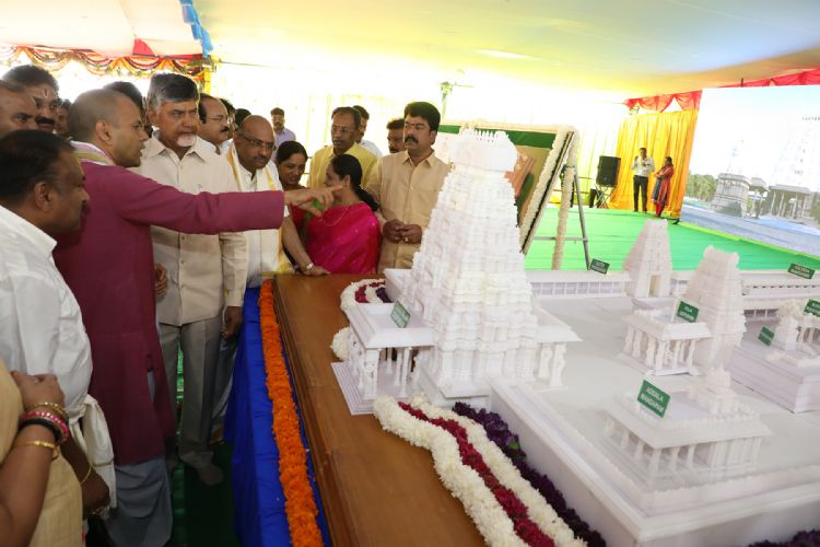 The construction of Sri Venkateswara Divyakshetram at Venkatapalem in Tullur mandal of Guntur district commenced on a religious note with Bhookarshanam and Beejaavapanam events on Thursday. CM Chandrababu Naidu took the plough and dug the area amidst chanting of Veda mantras.