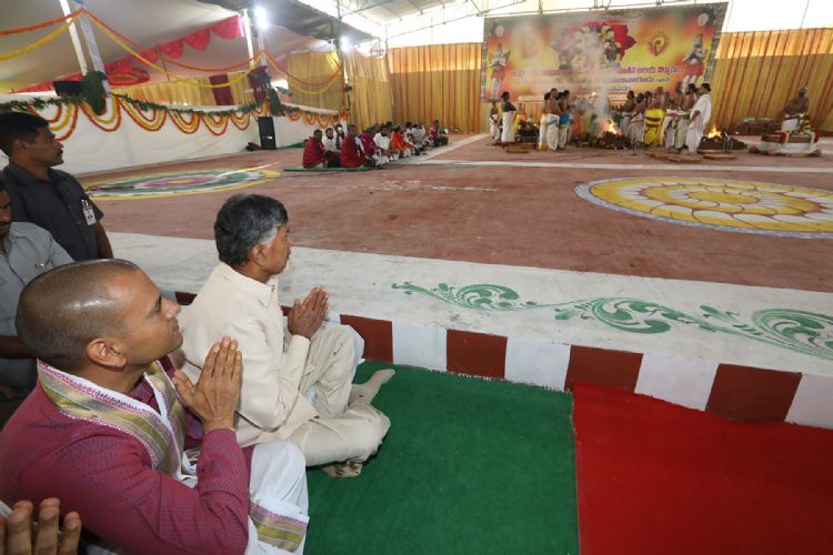 The construction of Sri Venkateswara Divyakshetram at Venkatapalem in Tullur mandal of Guntur district commenced on a religious note with Bhookarshanam and Beejaavapanam events on Thursday. CM Chandrababu Naidu took the plough and dug the area amidst chanting of Veda mantras.