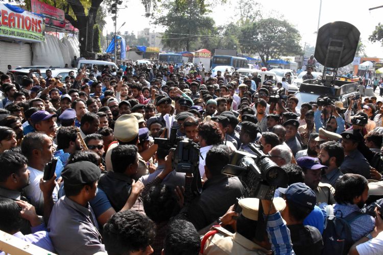 Stall owners look at the debris of their stock which was reduced to ashes in a major fire that broke out in Exhibition at Nampally on Wednesday night. There were some heated and angry moments at Exhibition Society office where stall owners held protest demanding compensation - INN Photos