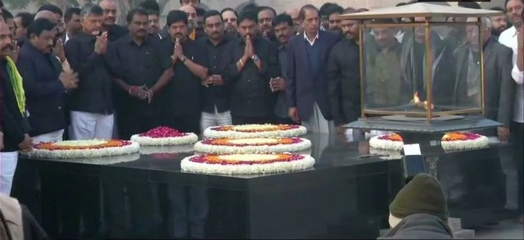 Andhra Pradesh Chief Minister Nara Chandrababu Naidu began a day-long fast here on Monday Dharma Porata Deeksha, demanding that the Center grant special status to the state. Before beginning the fast, Chandra Babu Naidu paid tributes to Mahatma Gandhi at Raj Ghat.
