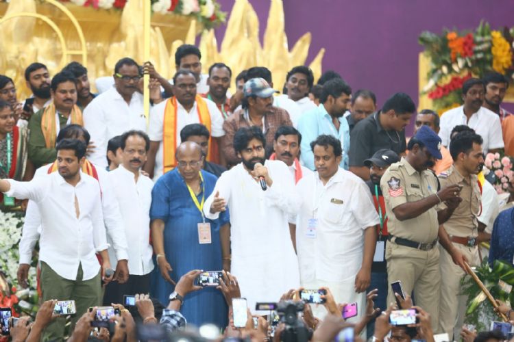 Janasena Chief Pawan Kalyan worships the 90 feet tall Vasavi Matha idol in Penugonda. Pawan Kalyan has promised to the people of Penugonda that the town would be rechristened as 'Sri Vasavi Kanyaka Parameswari Penugonda' once his party voted to power in the State.