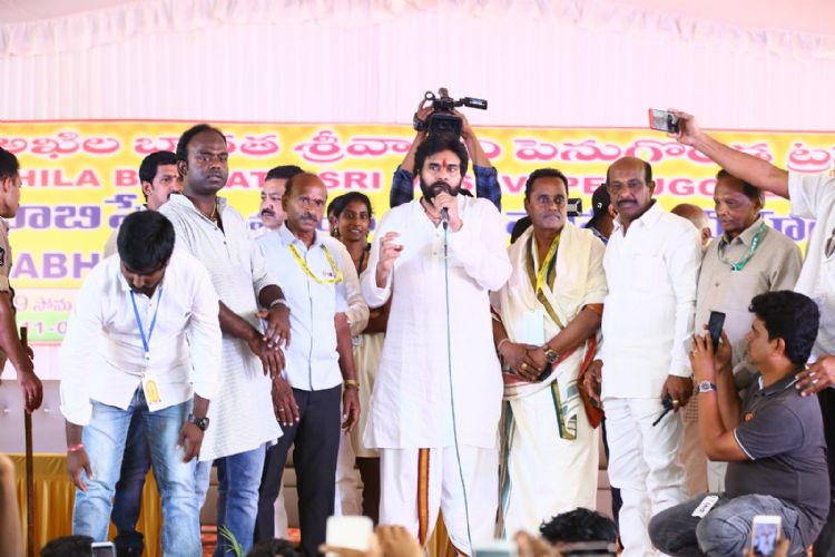Janasena Chief Pawan Kalyan worships the 90 feet tall Vasavi Matha idol in Penugonda. Pawan Kalyan has promised to the people of Penugonda that the town would be rechristened as 'Sri Vasavi Kanyaka Parameswari Penugonda' once his party voted to power in the State.