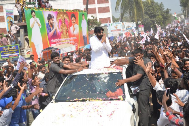 Janasena Chief Pawan Kalyan worships the 90 feet tall Vasavi Matha idol in Penugonda. Pawan Kalyan has promised to the people of Penugonda that the town would be rechristened as 'Sri Vasavi Kanyaka Parameswari Penugonda' once his party voted to power in the State.