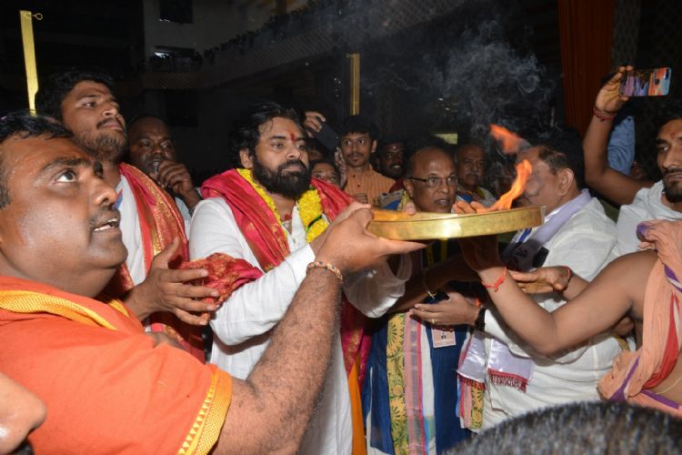 Janasena Chief Pawan Kalyan worships the 90 feet tall Vasavi Matha idol in Penugonda. Pawan Kalyan has promised to the people of Penugonda that the town would be rechristened as 'Sri Vasavi Kanyaka Parameswari Penugonda' once his party voted to power in the State.