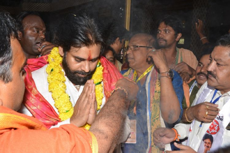 Janasena Chief Pawan Kalyan worships the 90 feet tall Vasavi Matha idol in Penugonda. Pawan Kalyan has promised to the people of Penugonda that the town would be rechristened as 'Sri Vasavi Kanyaka Parameswari Penugonda' once his party voted to power in the State.