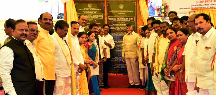 Chief Minister of Andhra Pradesh Nara Chandrababu Naidu laid foundation stones for Bhogapuram Green Field Airport, Chandana Food Park Ltd. Patanjali Food Park, Arogya Millet Processing unit, Degree College, Gurajada Apparao University and addressed Public Meeting at Bhogapuram, Vizianagaram District on Thursday February 14th.