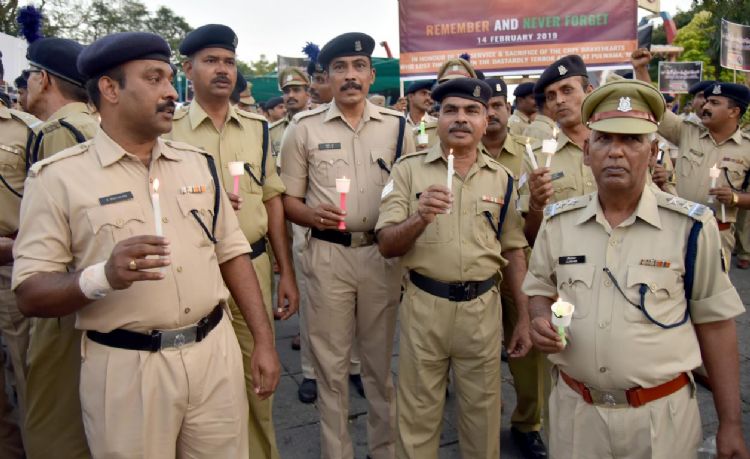 Central Reserve Police Force (CRPF), Police personnel and Civilians take out a candle light rally at Necklace Road on Friday evening to pay tributes to martyrs of Pulwama Terror Attack - INN Photos