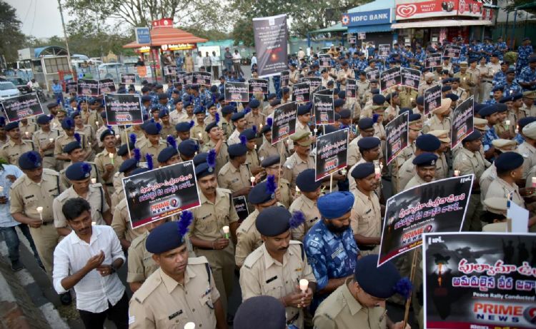 Central Reserve Police Force (CRPF), Police personnel and Civilians take out a candle light rally at Necklace Road on Friday evening to pay tributes to martyrs of Pulwama Terror Attack - INN Photos