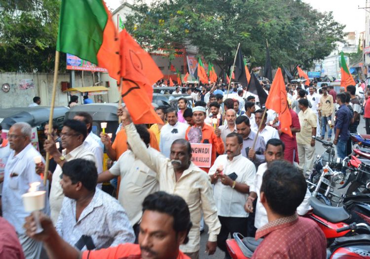BJP leaders organise candle light rally from Nampally to Goshamahal Stadium on Friday evening to pay tributes to CRPF personnel who achieved martyrdom in a terror attack in Jammu & Kashmir - INN Photos