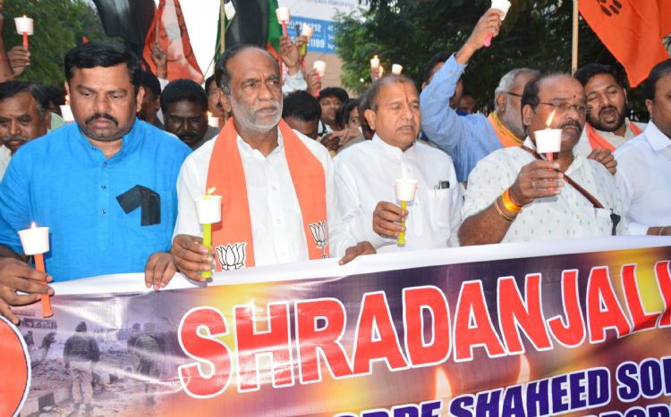 BJP leaders organise candle light rally from Nampally to Goshamahal Stadium on Friday evening to pay tributes to CRPF personnel who achieved martyrdom in a terror attack in Jammu & Kashmir - INN Photos