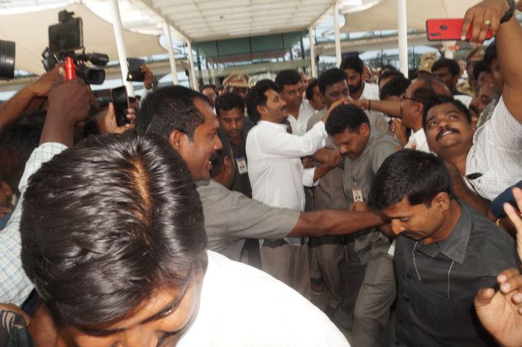 YSR Congress President YS Jagan Mohan Reddy was at Gannavaram Airport on Sunday while going to Eluru for the BC Garjana program.
