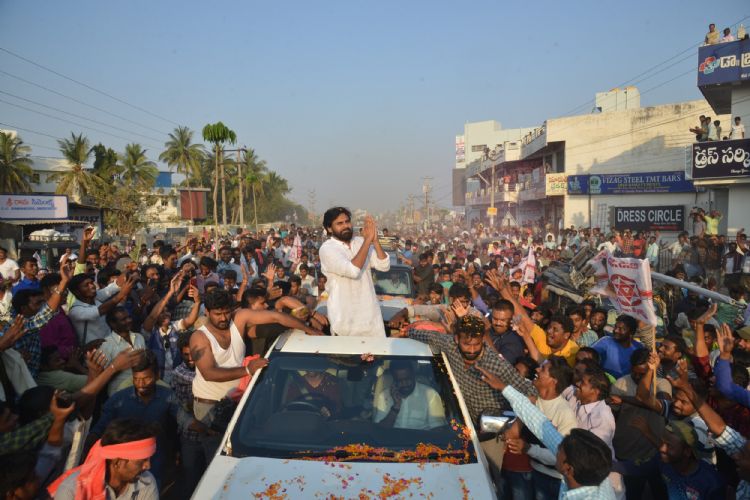 Pawan Kalyan Adoni Road Show on Monday February 25th. Large number of people came out to see Pawan.