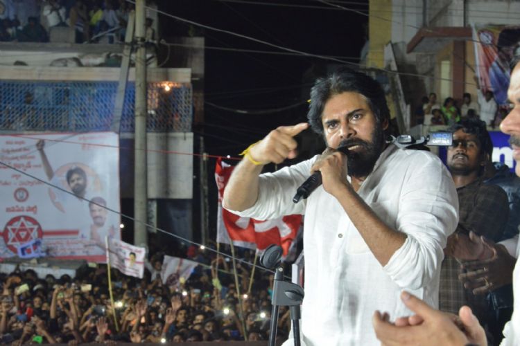 Janasena Chief Pavan Kalyan did a road show in Kadapa district on Wednesday along with Nadendla Manohar and other party leaders. Large number of people came to see him and attended the public meeting in Kadapa.
