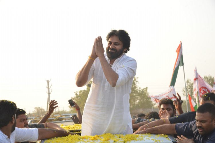 Janasena Chief Pavan Kalyan did a road show in Kadapa district on Wednesday along with Nadendla Manohar and other party leaders. Large number of people came to see him and attended the public meeting in Kadapa.