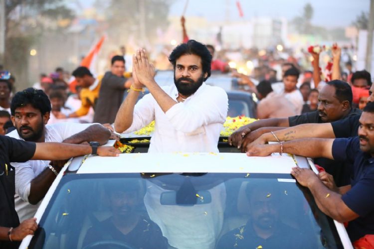 Janasena Chief Pavan Kalyan did a road show in Kadapa district on Wednesday along with Nadendla Manohar and other party leaders. Large number of people came to see him and attended the public meeting in Kadapa.