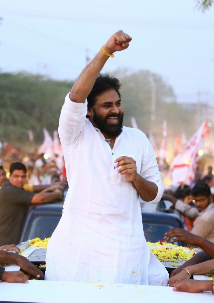 Janasena Chief Pavan Kalyan did a road show in Kadapa district on Wednesday along with Nadendla Manohar and other party leaders. Large number of people came to see him and attended the public meeting in Kadapa.