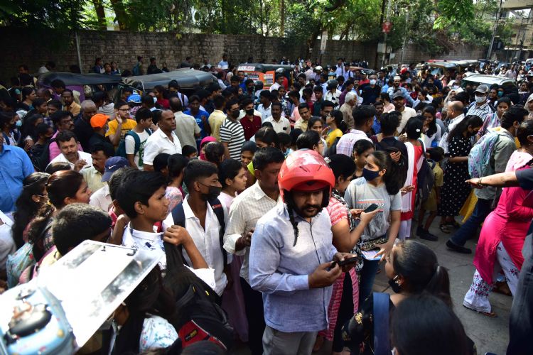 Students appear for the SSC examination at a Centre in Secunderabad on Monday - INN Photos