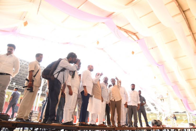Home Minister Mahmood ali and Minority Welfare Minister Koppula Eshwar spoke to media after reviewing arrangments for Iftar Dinner at LB Stadium in Hyderabad on Tuesday - INN Photos