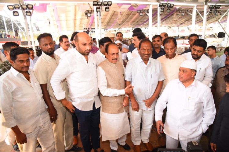 Home Minister Mahmood ali and Minority Welfare Minister Koppula Eshwar spoke to media after reviewing arrangments for Iftar Dinner at LB Stadium in Hyderabad on Tuesday - INN Photos