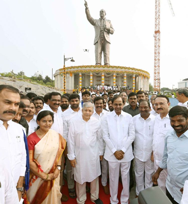 Telangana Chief Minister K Chandrasekhar Rao unveiled the 125-ft tall statue of B R Ambedkar near Hussain Sagar in Hyderabad to commemorate the birth anniversary of the Constitution's architect in a grand celebration - INN Photos
