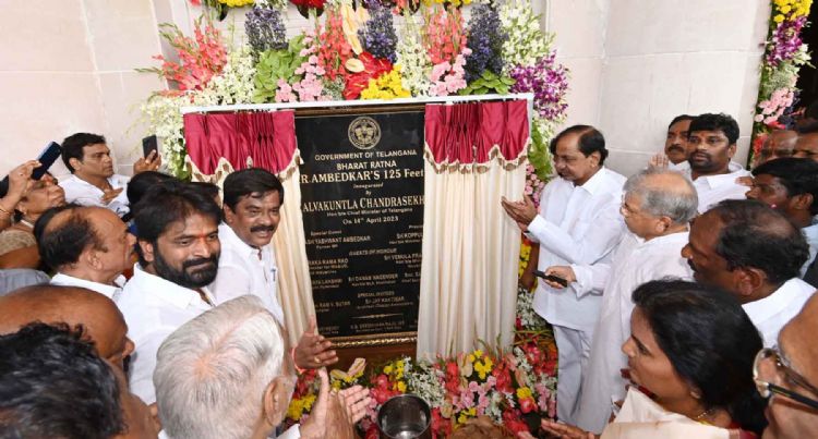 Telangana Chief Minister K Chandrasekhar Rao unveiled the 125-ft tall statue of B R Ambedkar near Hussain Sagar in Hyderabad to commemorate the birth anniversary of the Constitution's architect in a grand celebration - INN Photos