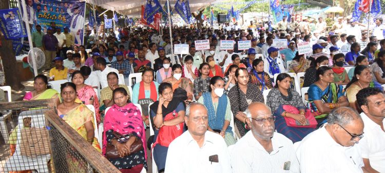 Leaders of various political parties, including Congress, TJS, CPI(ML) New Democracy, and BSP, participated in a protest at Indhra Park on Tuesday in Hyderabad on the TSPSC Paper Leakage Issue. TJS Chief Prof. Kodandaram, Telangana BSP President Praveen Kumar, AAP Core Committee Member D Sudhaker, Balladeer Singer Gaddar, student leaders and others participated in the protest - INN Photos