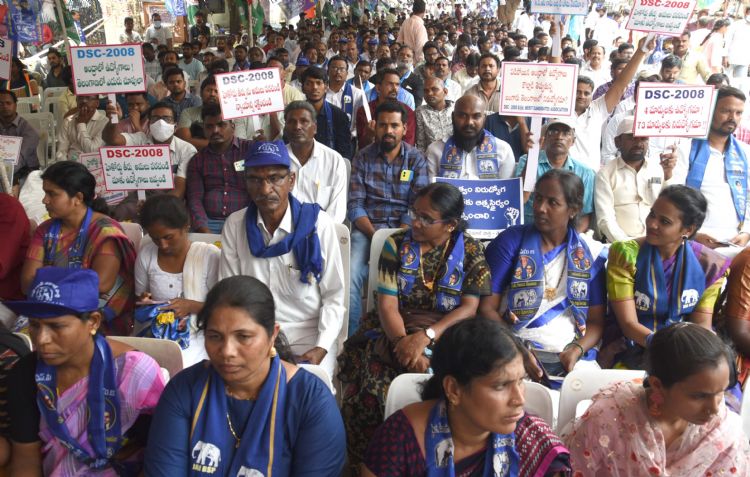 Leaders of various political parties, including Congress, TJS, CPI(ML) New Democracy, and BSP, participated in a protest at Indhra Park on Tuesday in Hyderabad on the TSPSC Paper Leakage Issue. TJS Chief Prof. Kodandaram, Telangana BSP President Praveen Kumar, AAP Core Committee Member D Sudhaker, Balladeer Singer Gaddar, student leaders and others participated in the protest - INN Photos