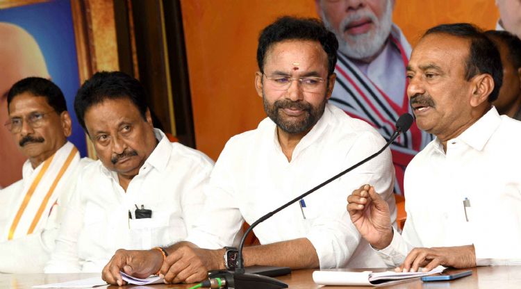Union Minister & BJP State President G Kishan Reddy and BJP Telangana Election Management Committee Chairman Eatala Rajender addressed a Press Conference at the BJP State office, Nampally in Hyderabad on Sunday