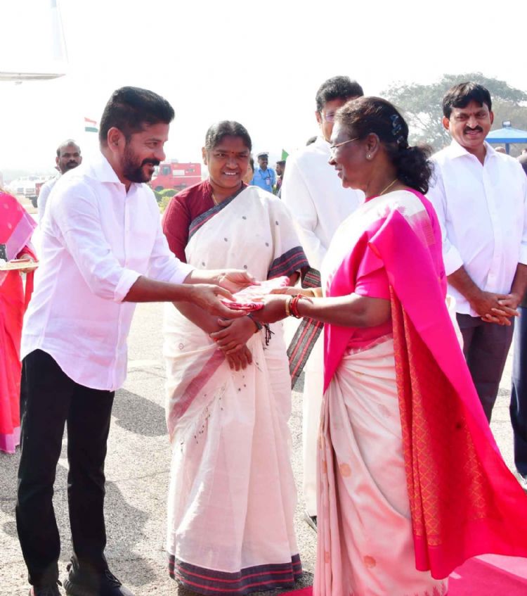 President of India Droupadi Murmu was given a ceremonial send-off at Hakimpet Air Force Station in Hyderabad on Saturday by Governor Dr Tamilisai Soundararajan, Chief Minister Revanth Reddy and dignitaries - INN Photos