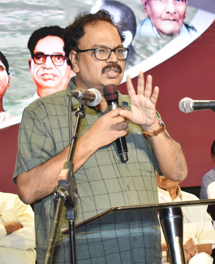 Prof. Haragopal addresses the concluding CPI meeting of the 76th Telangana Armed Struggle Celebrations in Hyderabad, where leaders paid tribute to freedom fighters - INN Photos