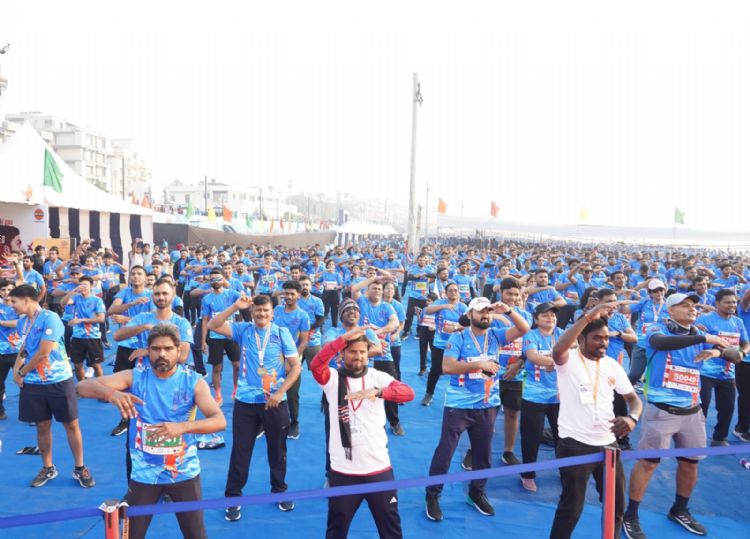 A large number of athletes and fitness enthusiast participate in Vizag Navy Marathon 2025 in Visakhapatnam on Sunday
