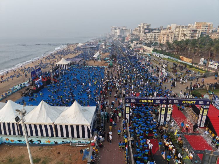 A large number of athletes and fitness enthusiast participate in Vizag Navy Marathon 2025 in Visakhapatnam on Sunday
