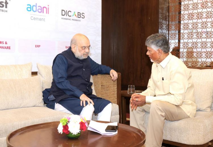 TDP president and AP Chief Minister Nara Chandrababu Naidu with Union Home Minister Amit Shah in Delhi on Friday. Naidu in one to one meeting with Amit Shah discus