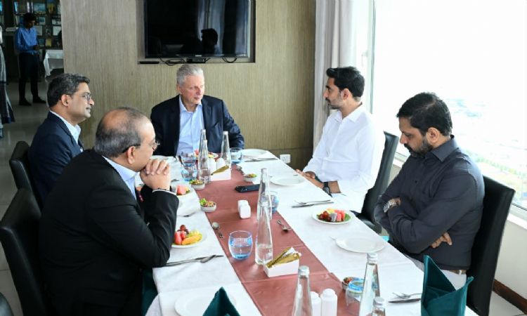 Andhra Pradesh IT Minister Nara Lokesh holding discussions with Capgemini Global CEO Aiman Ezzat with regard to potential investments in State in Visakhapatnam on Thursday.