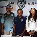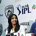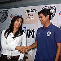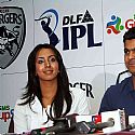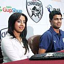 RP Singh and actress Sanjana addressing media for IPL