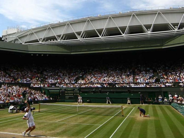 Roddick fires down a serve as he races into a 6-2 lead in the second set tie-break.